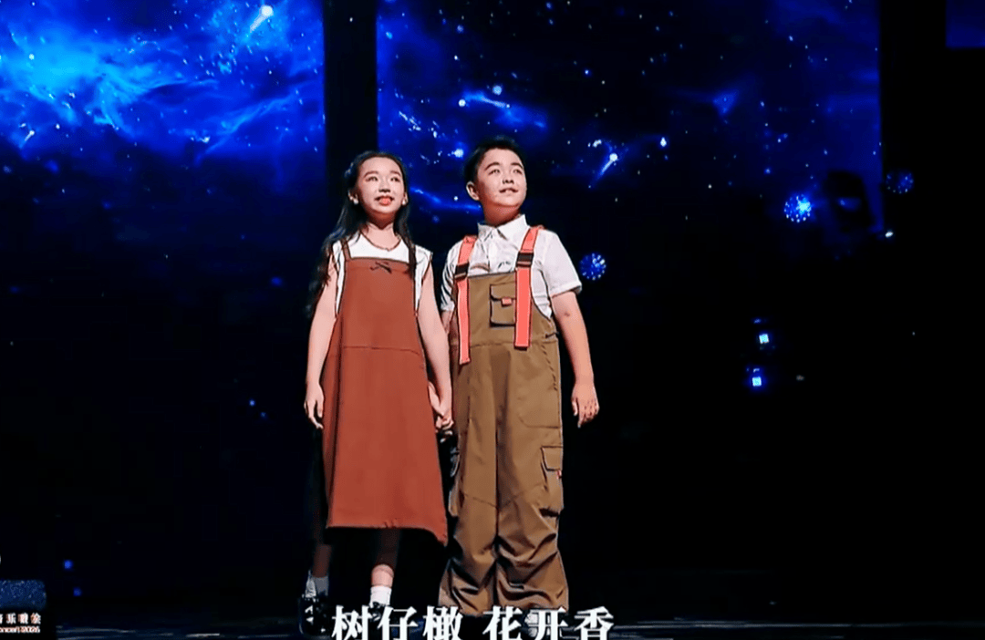 高云翔董璇女儿小酒窝和陈思诚佟丽娅儿子陈奕橦作为伴舞开场,两人手拉手跳舞非常活泼可爱。