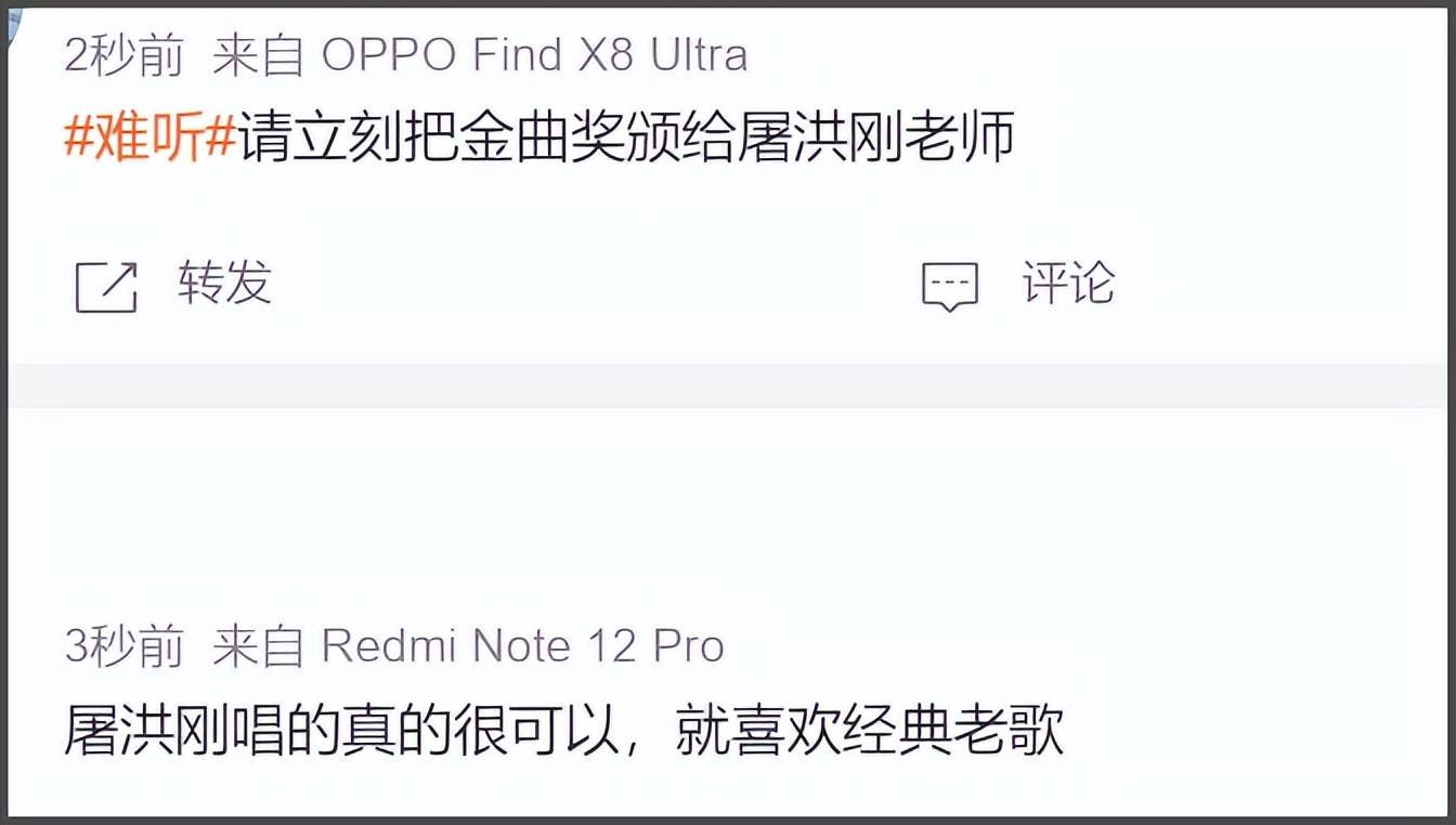 58岁的屠洪刚唱到脖子青筋暴起,但唱功依旧在线,观众恨不得给他颁奖。