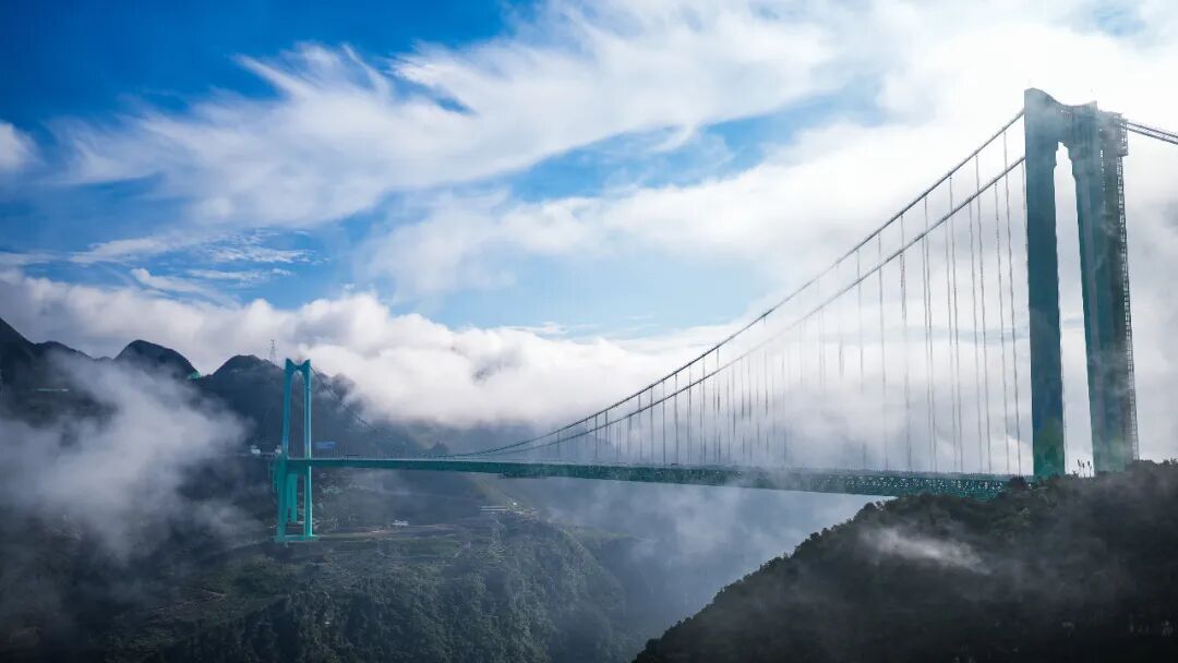 花江峡谷大桥位于贵州省安顺市关岭布依族苗族自治县与黔西南州贞丰县交界处北盘江花江段。大桥全长2890米,主桥跨径1420米,桥面到水面高度625米。主桥跨径居山区桥梁跨径世界第一、桥梁高度居世界第一。