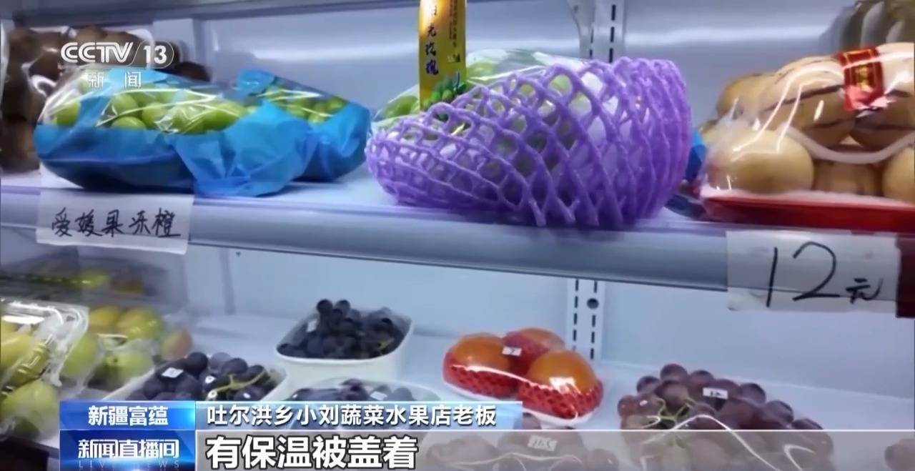 吐尔洪乡小刘蔬菜水果店老板:我们现在还是隔一天进一次货,有保温被盖着,回来的时候都是新鲜完整的,菜价也跟平时一样持平。